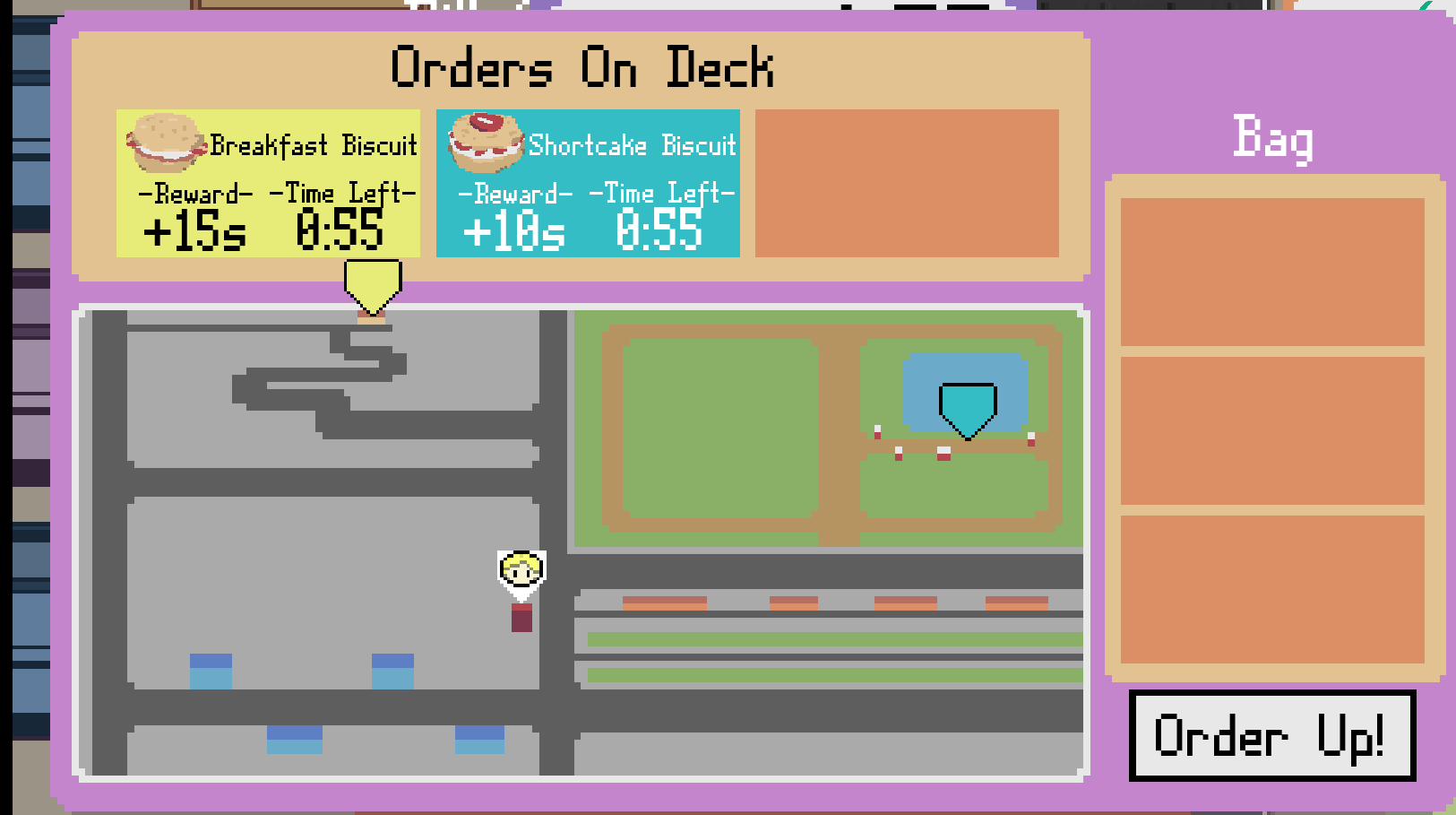 It's your first day on the job at the Risky Biscuit, the town's premier biscuit delivery service! Drop off as many biscuits as you can in order to sustain your time, and try to outrun the clock (and the traffic) before it's too late. Will your high risks turn into rewards? Find out when you play Dough-livery Boy!